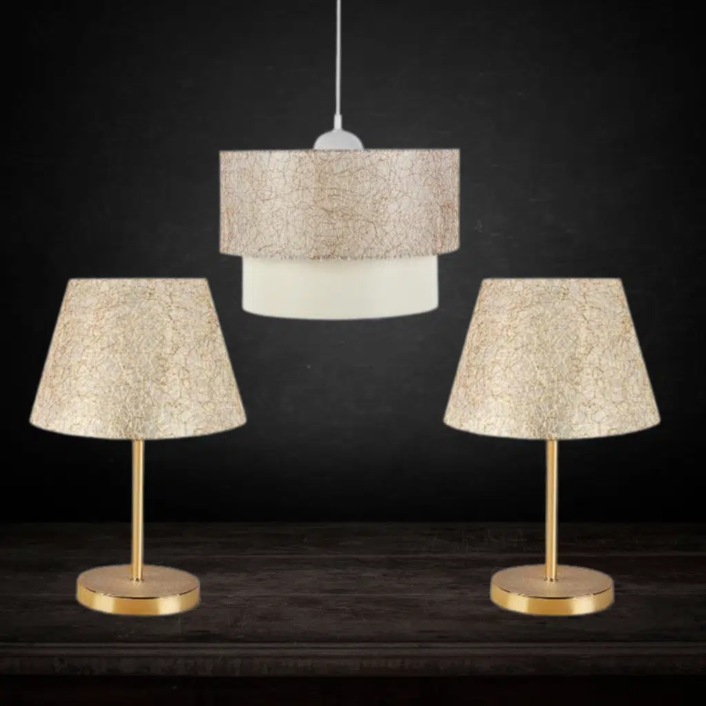 | Etiketler | Altın İp Pasta Tekli Sarkıt Avize ve 2 Adet Gold Abajur Seti Yatak Odası |