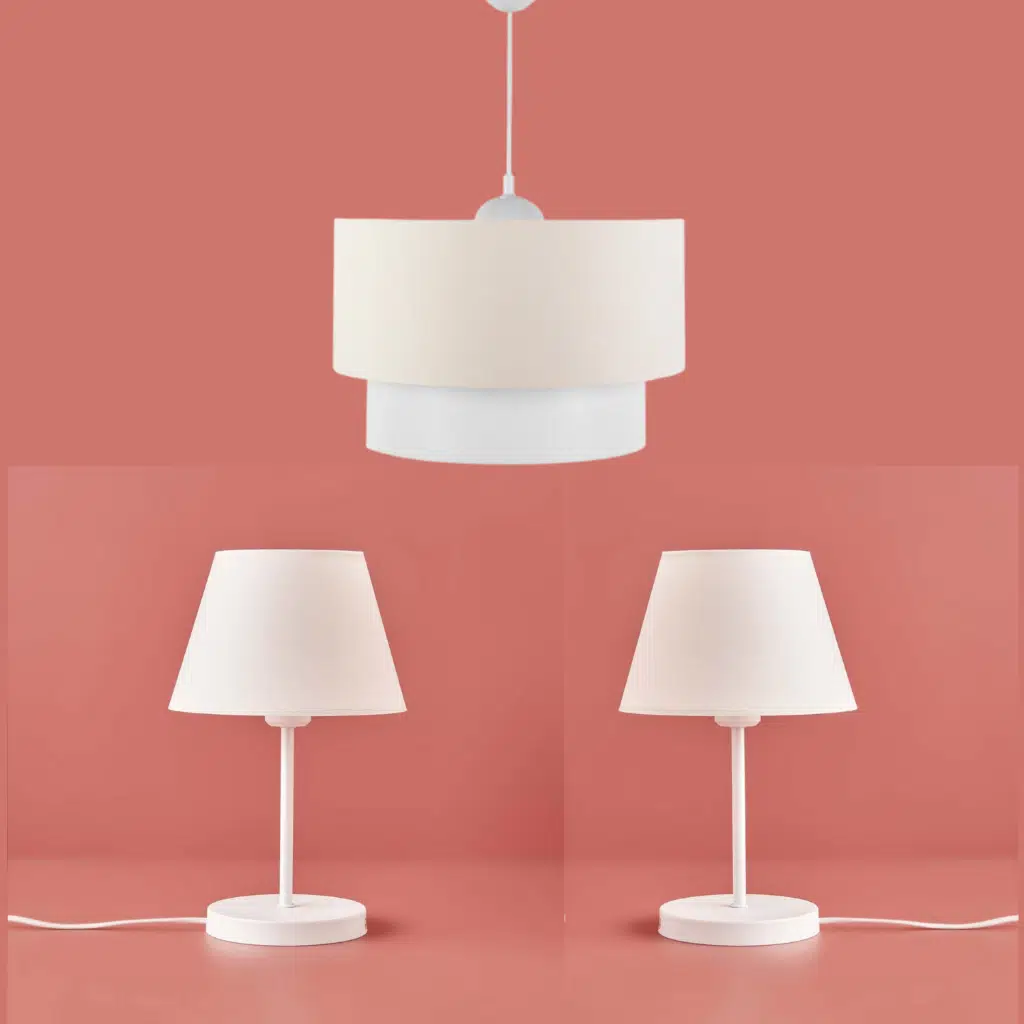 | Etiketler | Art Beyaz Metal Gövdeli Üçlü Avize ve Abajur Seti Krem Kumaş |