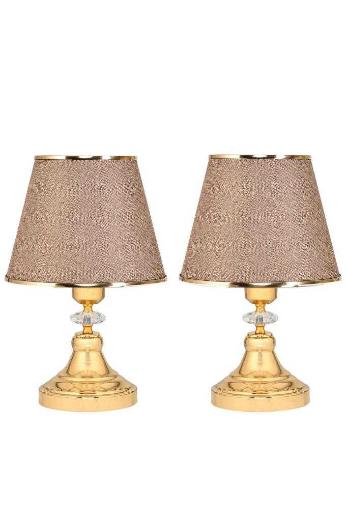 Etiketler | Art Deco Tarz Kristal Taş Süslü Metal Ayak ve Gold Şeritli Kumbeji Başlık 2'li Abajur Seti İki Adet |