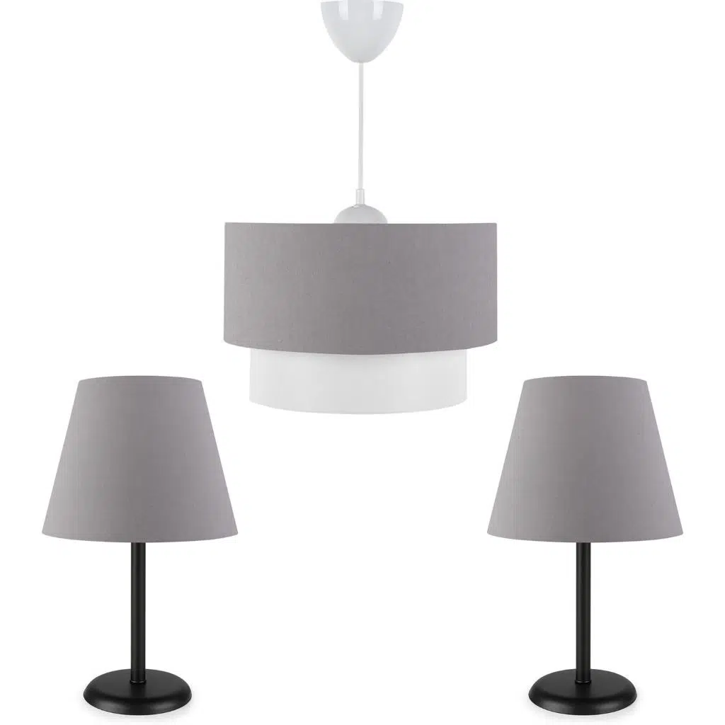 | Etiketler | Art Siyah Metal Gövdeli Gri Üçlü Avize ve Abajur Seti |