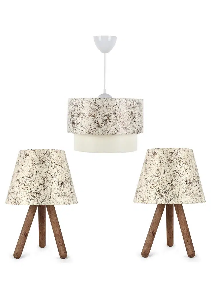 Bir avize ve iki adet abajurdan oluşan nubuk kumaştan yapılma aydınlatma seti , avize iskeleti plastik , abajur ayakları ahşaptır. Abajurda kuıllanılan 1,5 m kablo açma / kapama anahtarlıdır.