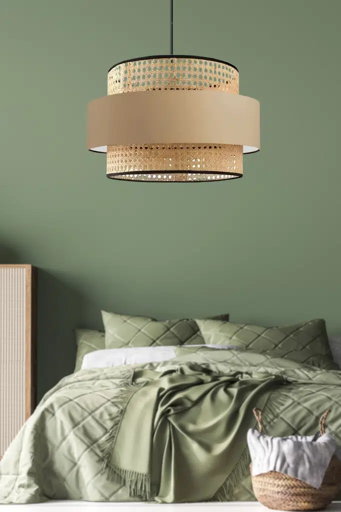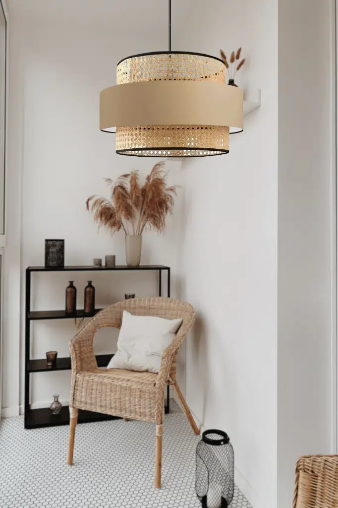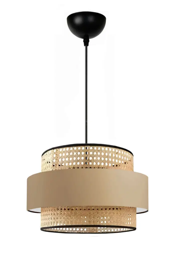 Metal iskelet üzerine orijinal rattan kullanılarak yapılmış ve düz kumaş ile süslenmiştir. Rattan örgü arasından ışığı mükemmel yansıtır. Ev , ofis ve misafir ağırlayan işletmelerin kullanımına uygun, birinci sınıf bir sarkıt avizedir.