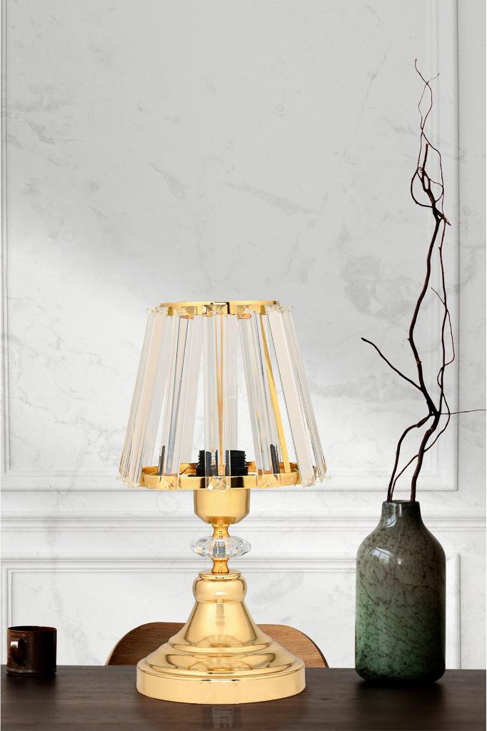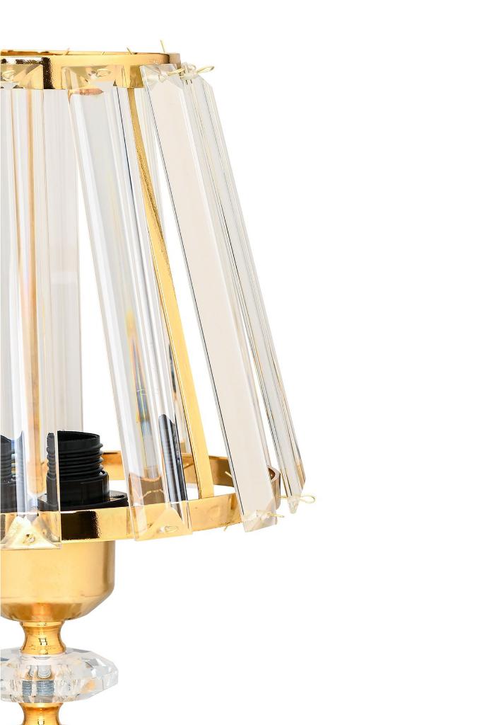 Etiketler | Gerçek Kristal Cam Başlık Gold Metal Gövdeli 2'li Yatak Odası Abajur İki Adet Gece Lambası |