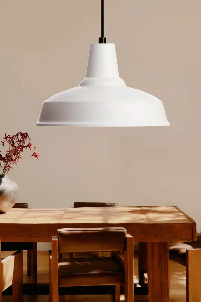 Ev, ofis, cafe , kuaför ya da benzeri işletmelere uygun olmakla birlikte , okul, kreş, banka , market gibi kurumsal firmaların da kullanabileceği, özellikle mutfak, yemek salonları , depo ve antrepo gibi alanlara uygun , tamamen metal bir tavan sarkıt ürünüdür. Ürünle birlikte tavan askı aparatları takılı olarak gönderilir. Paketlere ampul dahil değildir.