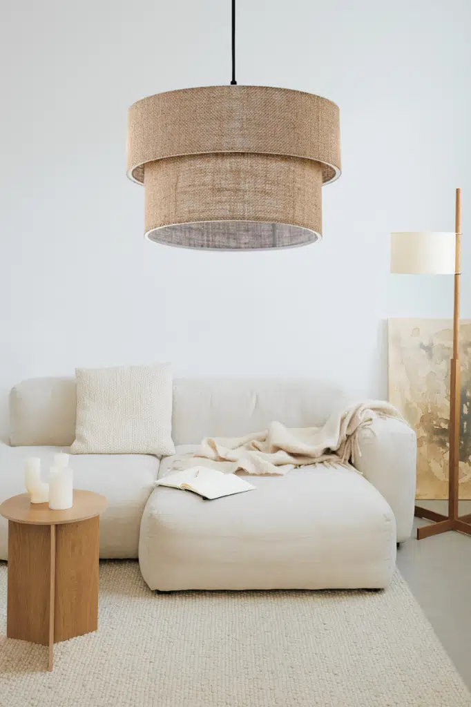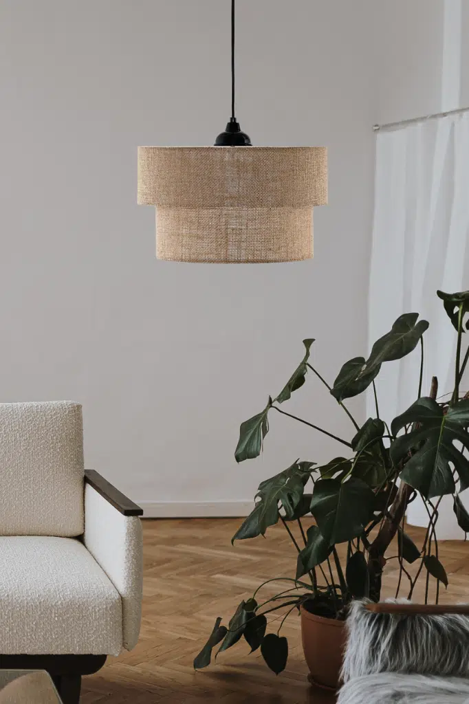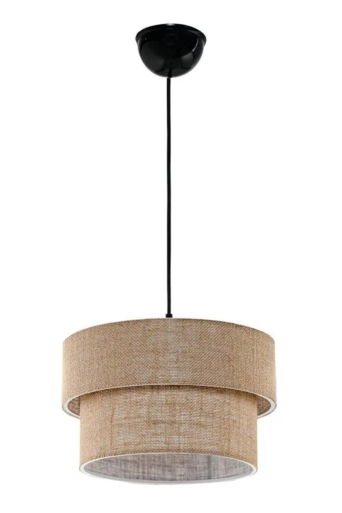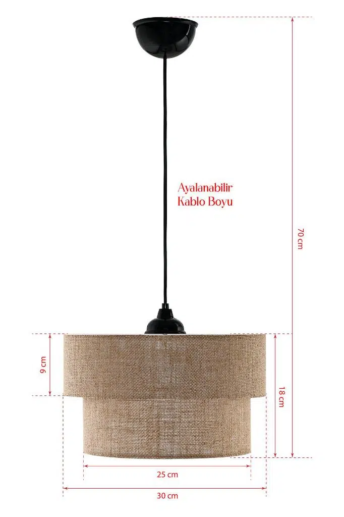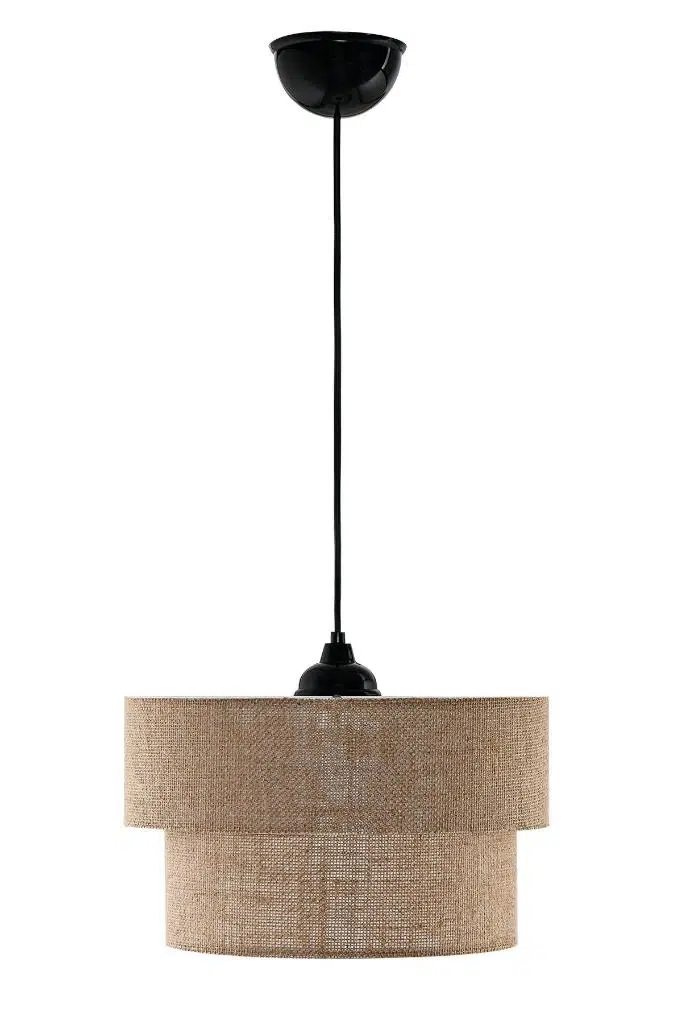 İki katı da jüt kumaş malzeme ile yapılmıştır. Kullanılan alana dekoratif , otantik bohem bir hava katar. Ev, ofis, cafe ve misafir ağırlayan işletmelere uygun şık sarkıt avize.