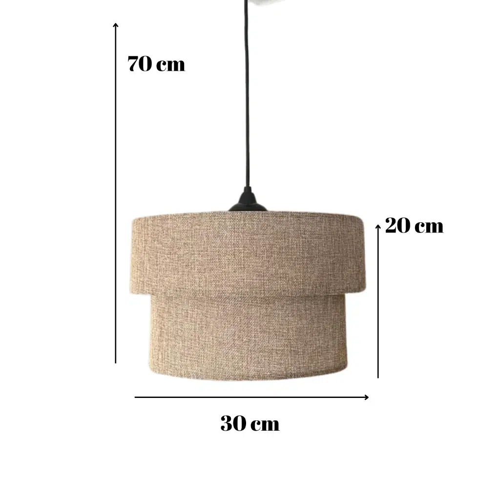 İki katı da kumaş kaplama malzeme ile yapılmıştır. Üründe siyah çember kullanılmıştır ve siyah askı aparatı ile gönderilir. Kullanılan alana dekoratif bir hava katar. Çekilen resimler bire bir kullanım alanındandır. Herhangi bir işlem yoktur.