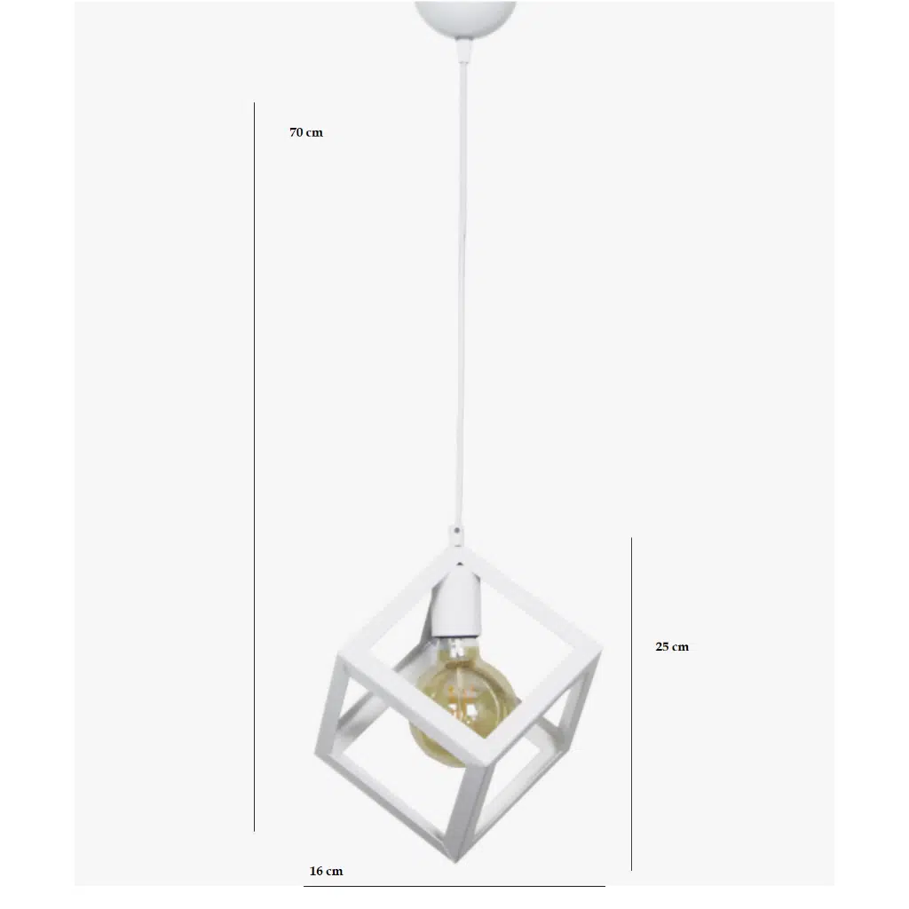 Ürün her bir kenarı 16 cm olan metal küp şeklindedir. Sadece tavan bağlantı kabosu plastiktir. Ürün kullanıma hazır olarak gönderilmektedir. Ev ya da işyerlerinde kullanıma uygundur. Evinizde mutfak , hol , çocuk/genç odası ve bir çok farklı alanda değerlendirlebilir.