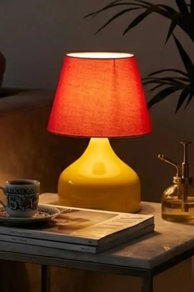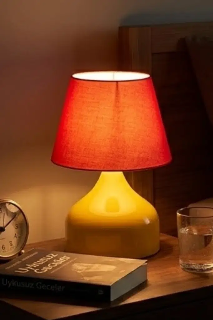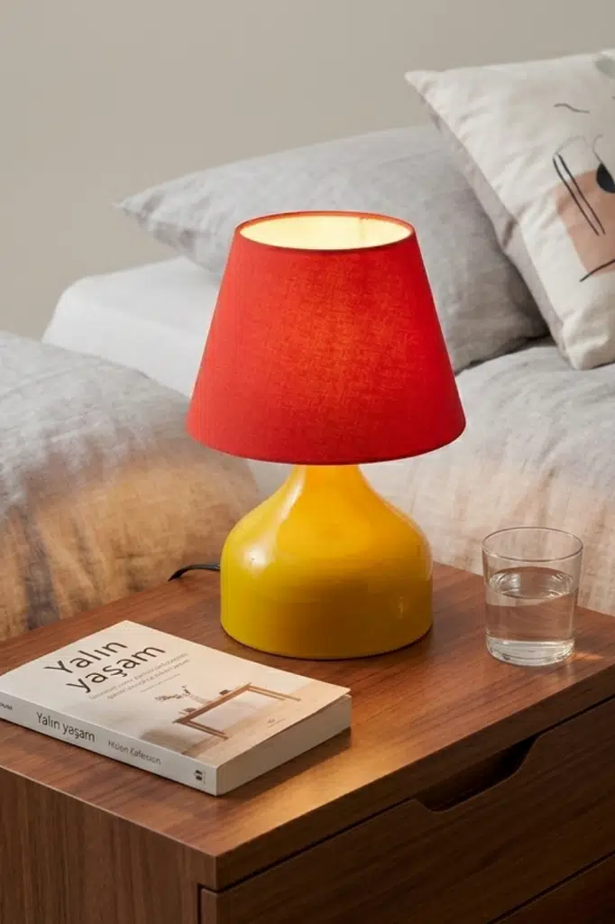 | Etiketler | Milo Metal Sarı Kırmızı Kumaş Abajur Masa Lambası Okuma Işığı |