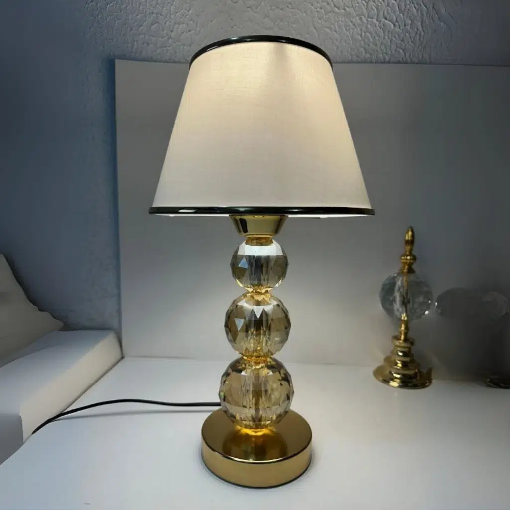 | Etiketler | Mooncher Cam Gövdeli Gold Metal Abajur Altın Şeritli Krem Kumaş Başlık Gece Lambası |