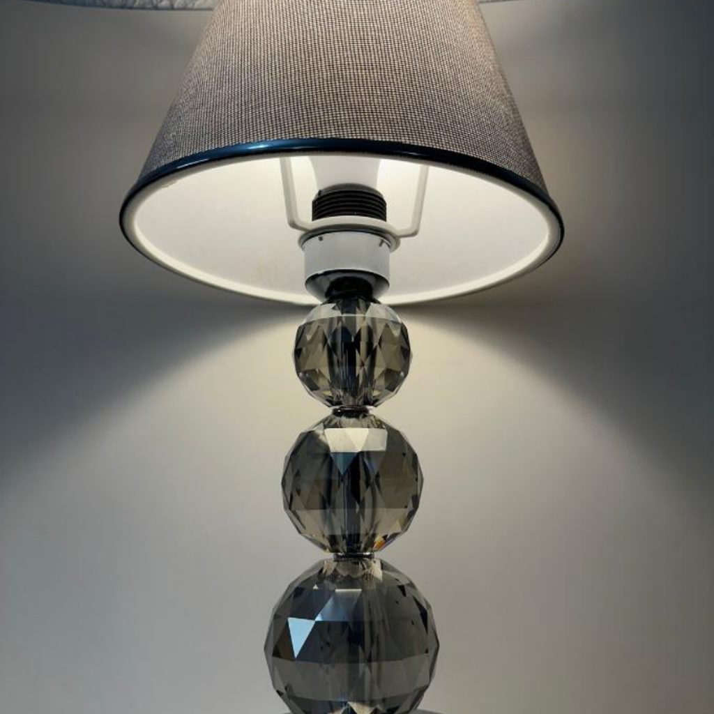 Metal ve kristal camdan yapılmış dekoratif ayağı ve gümüş şerit çekilmiş kumaş başlıkla tamamlanmış, kullanılan alana çok net bir şıklık katacak, art deco bir armatürdür. Hem oturma alanları hem de yatak odasında değerlendirilebilir.