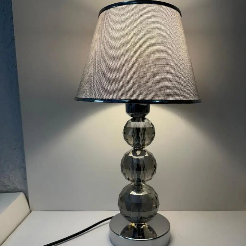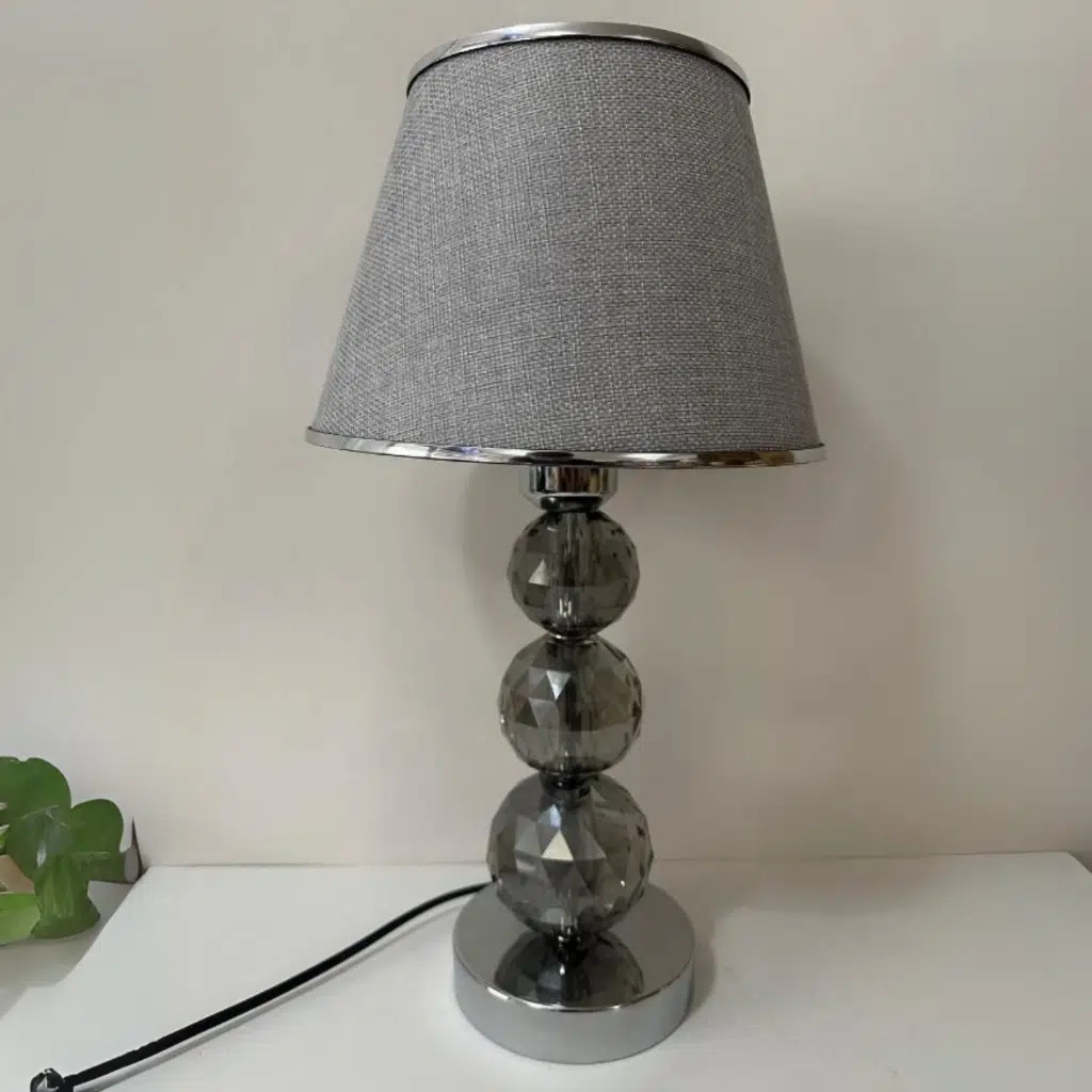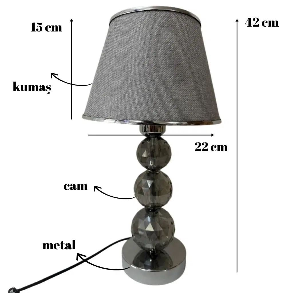 | Etiketler | Mooncher Cam Gövdeli Krom Metal Abajur Gümüş Şeritli Gri Kumaş Başlık Gece Lambası |