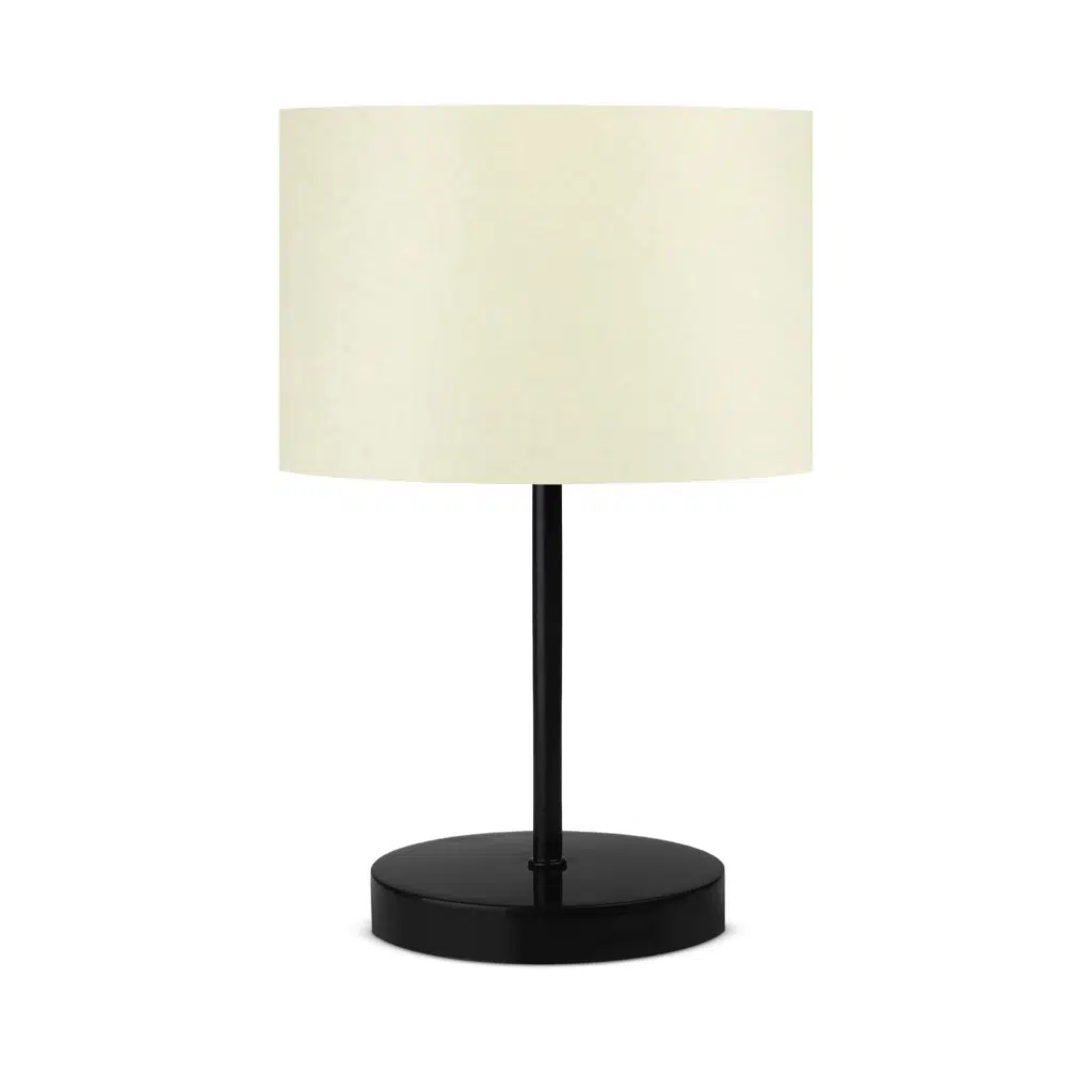 Ev, ofis, cafe ve misafir ağırlayan işletmelere uygun, metal/bakalit ayak üzerine kumaş başlıkla birleştirilmiş, şık abajur/masa lambası.