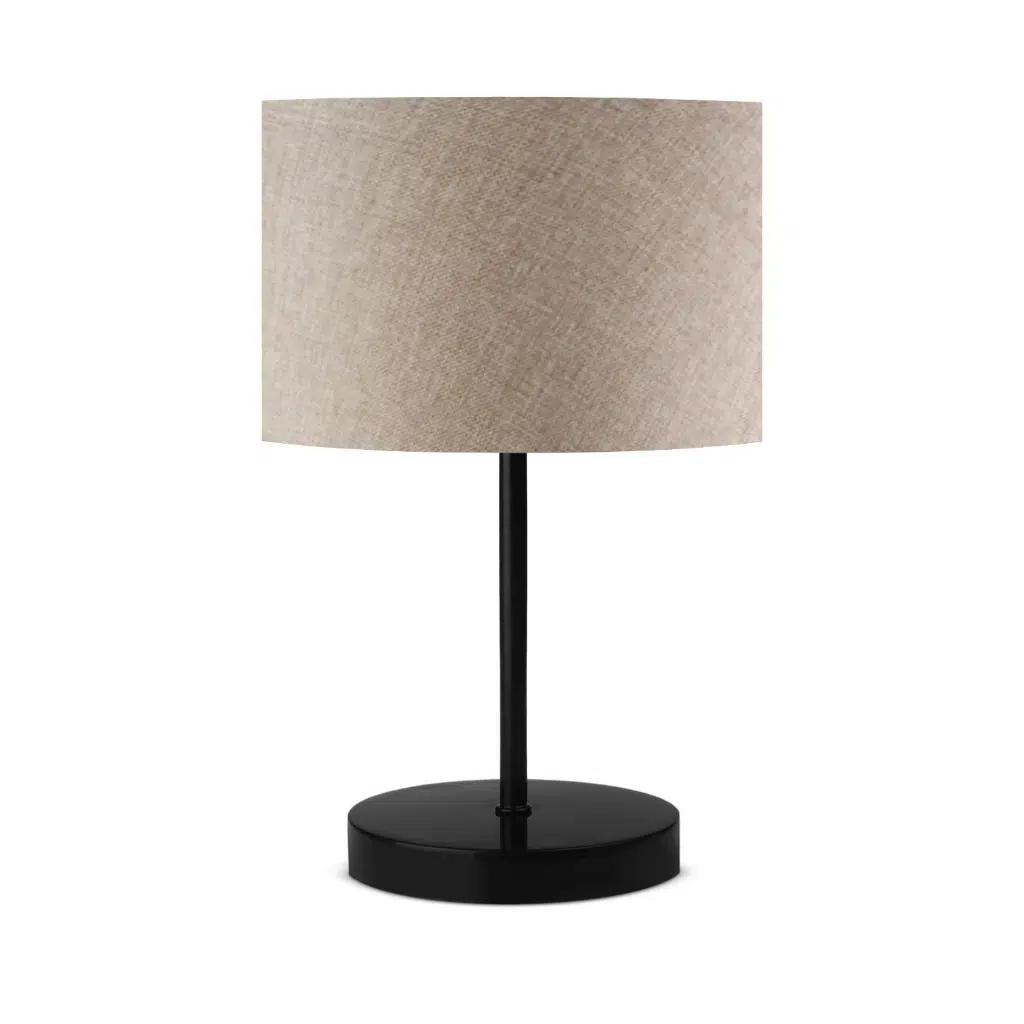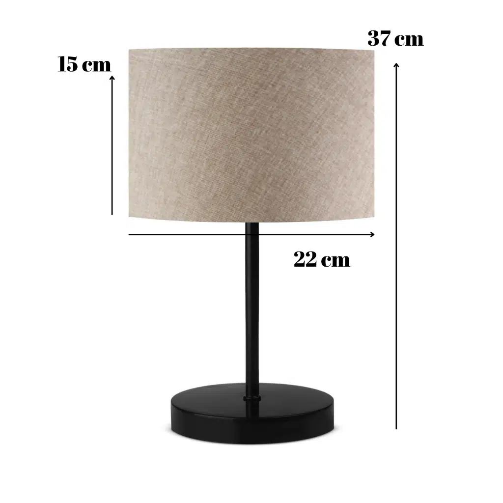 Ev, ofis, cafe ve misafir ağırlayan işletmelere uygun, metal/bakalit ayak üzerine kumaş başlıkla birleştirilmiş, şık abajur/masa lambası.