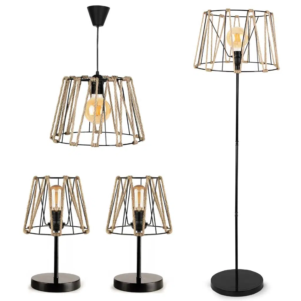 Ev ya da ofisteki yaşam alanlarınızı tamamen değiştirecek, sarkıt , abajurları ve lambaderi ile tam bir takım aydınlatmadır. Ürün metal ve halattan oluşur.