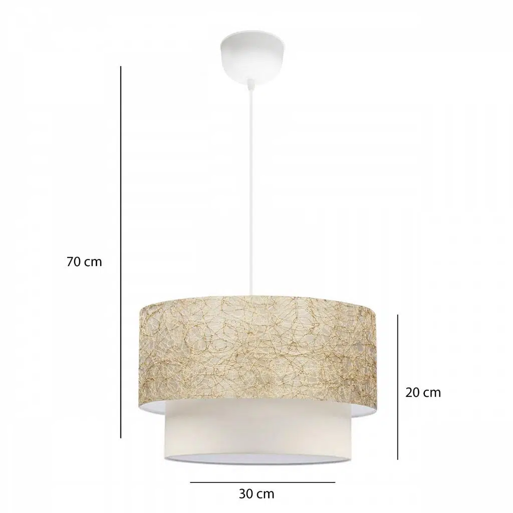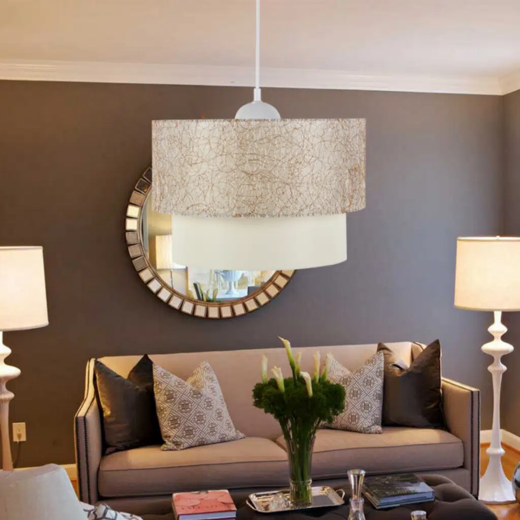 Bu ürün salon, oturma odası ve yatak odası için uygundur. Üründe kullanılan kumaş altınip kaplamadır. Ürünün diğer çember ve askı duy tesisatı plastiktir.