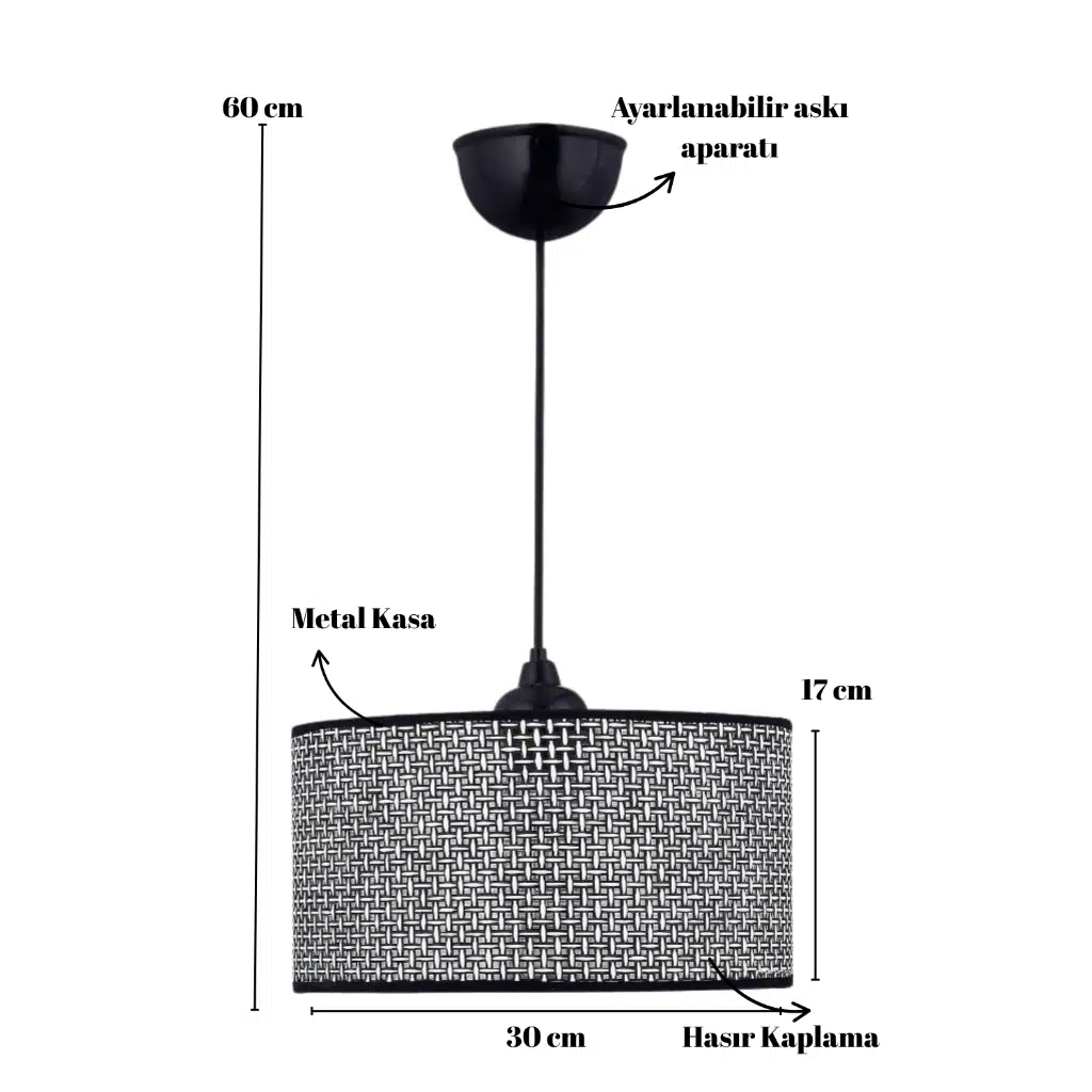 | Etiketler | Rakkas Hasır Kaplama Metal Kasalı Silindir Kırçıl Siyah Avize Salon Yatak Odası Rattan Sarkıt |