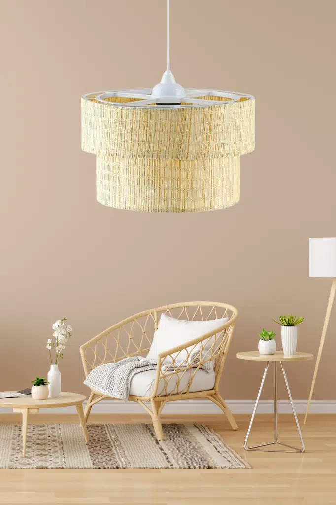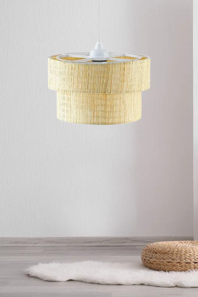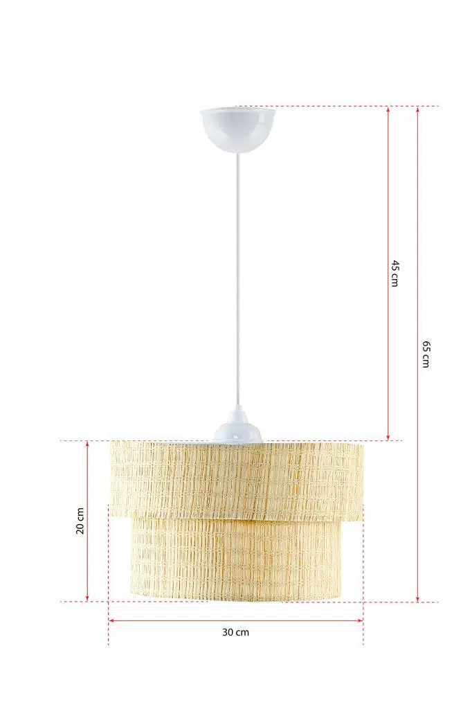Orjinal hasırla kaplanmış aydınlatma malzemesi ile yapılmıştır. Aralardaki boşlulardan harika şekilde ışığı yansıtırken kullanılan alana dekoratif ve otantik bir hava katar.