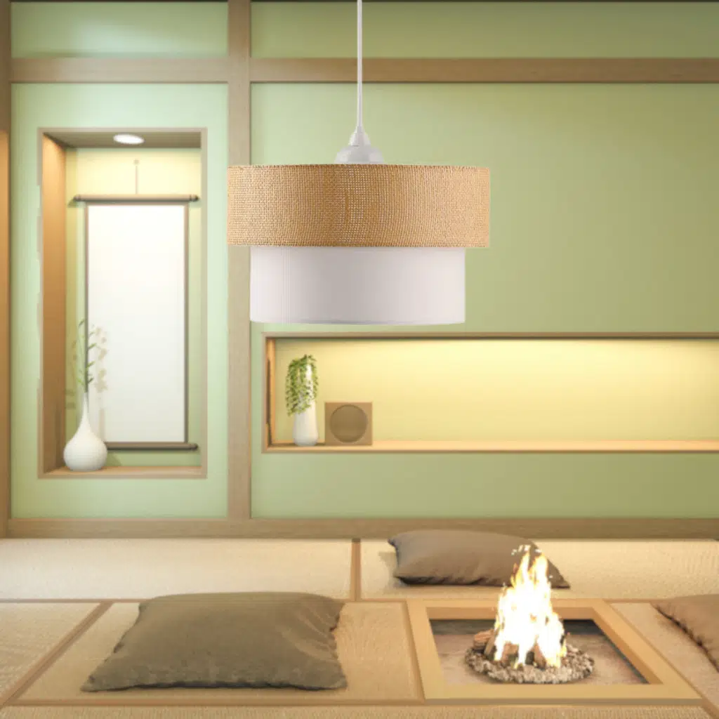 Üst katı kalın hasır kaplama malzeme ile yapılmıştır. Aralardaki boşlulardan harika şekilde ışığı yansıtır ve kullanılan alana dekoratif ve otantik bir hava katar.