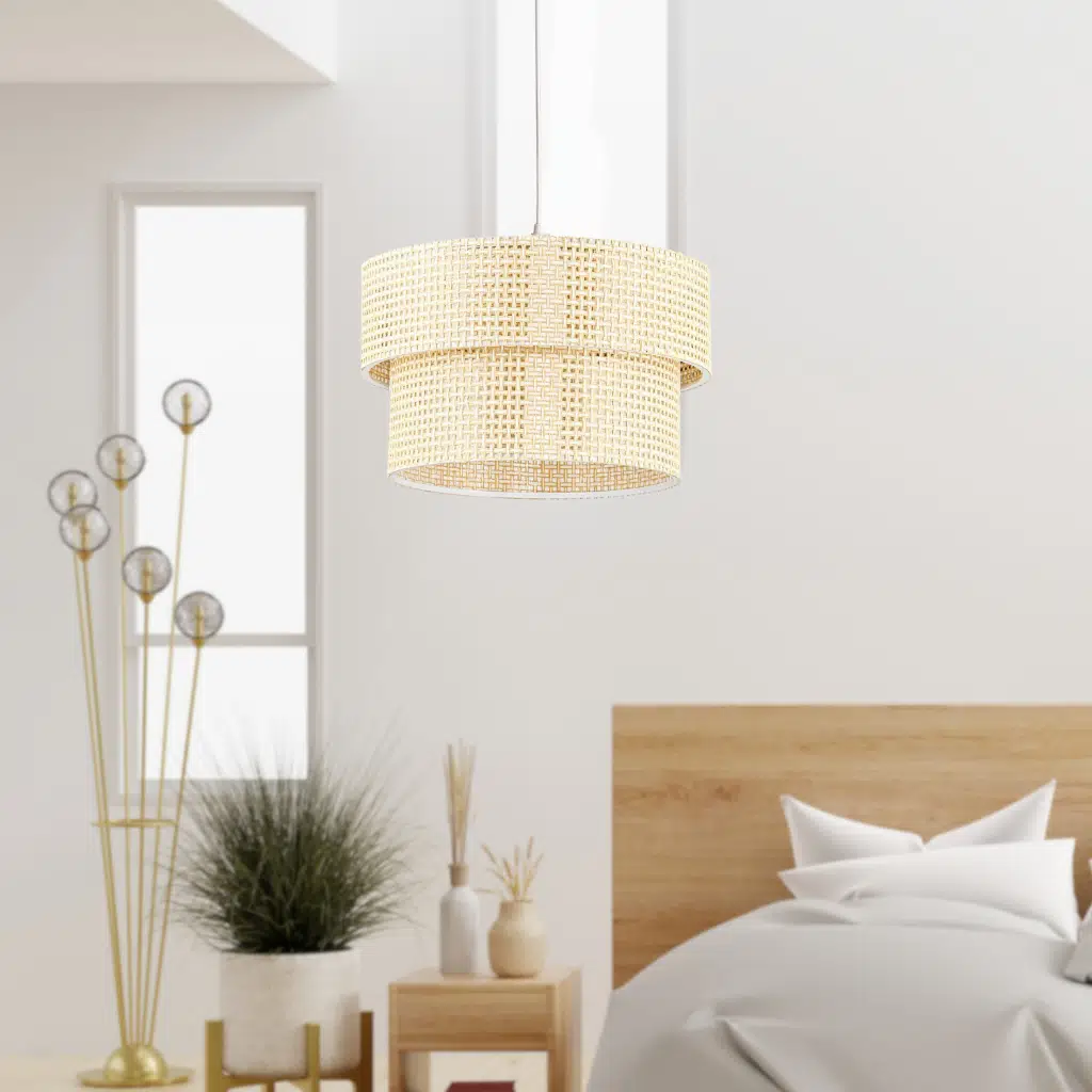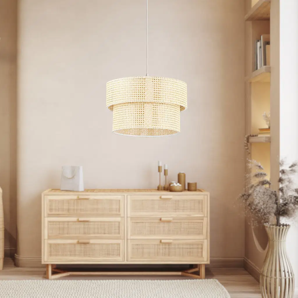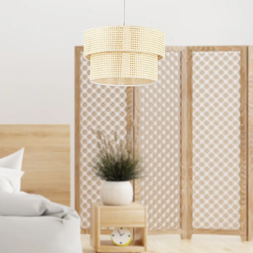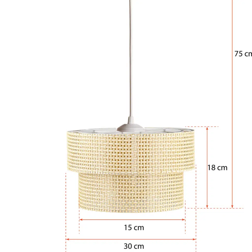 Orjinal hasırla kaplanmış aydınlatma malzemesi ile yapılmıştır. Aralardaki boşlulardan harika şekilde ışığı yansıtırken kullanılan alana dekoratif ve otantik bir hava katar.