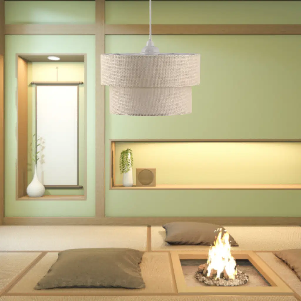 İnce hasır kaplama malzeme ile yapılmıştır. Aralardaki boşlulardan harika şekilde ışığı yansıtır ve kullanılan alana dekoratif ve otantik bir hava katar.