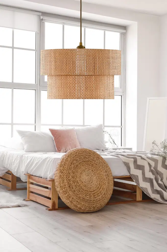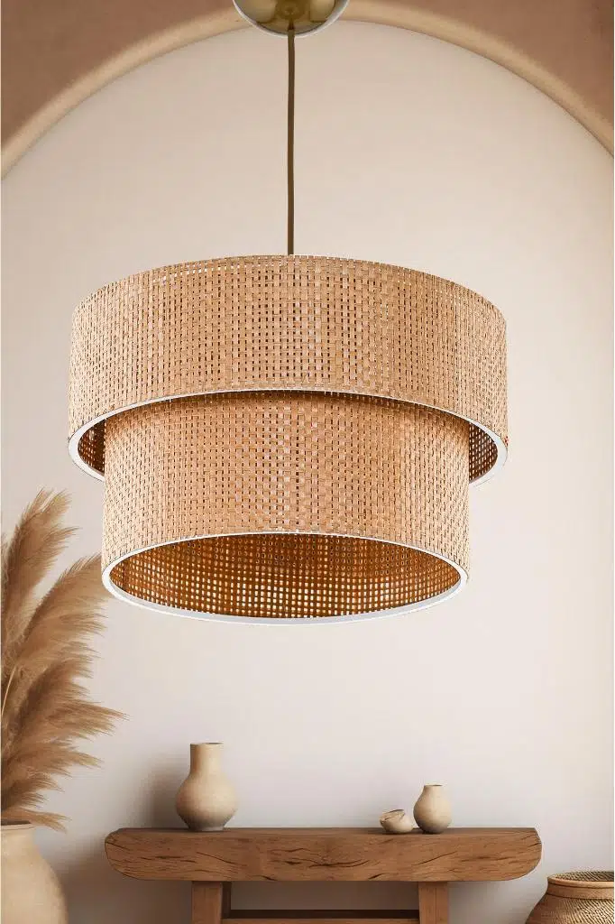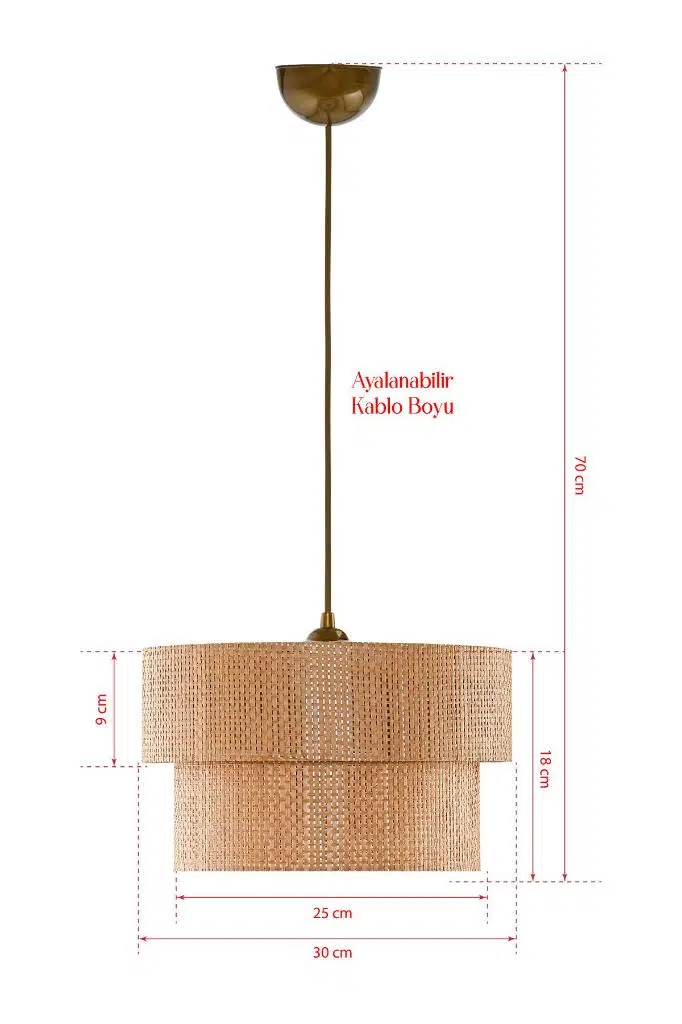 Orjinal hasırla kaplanmış aydınlatma malzemesi ile yapılmıştır. Aralardaki boşlulardan harika şekilde ışığı yansıtırken kullanılan alana dekoratif ve otantik bir hava katar.