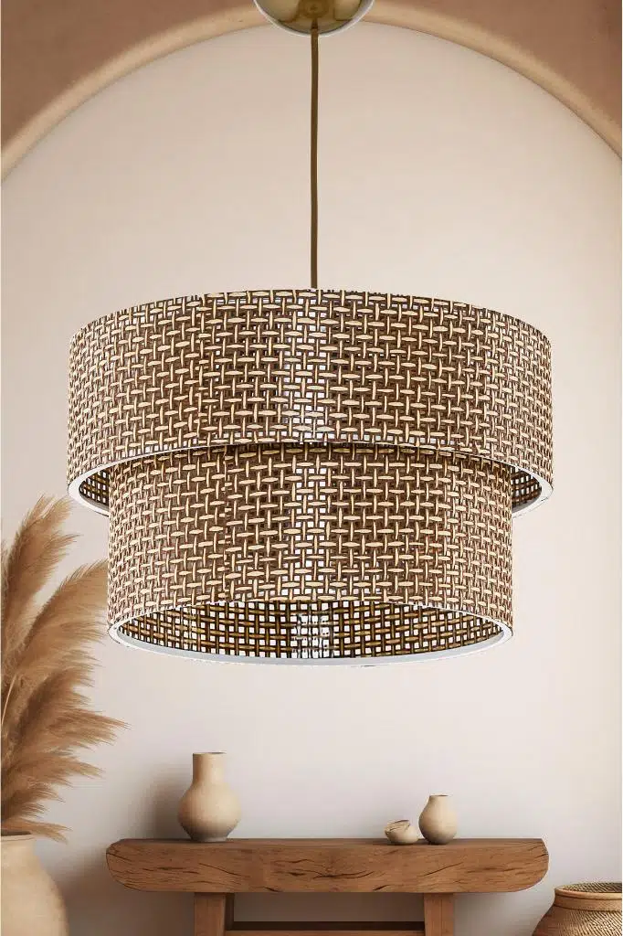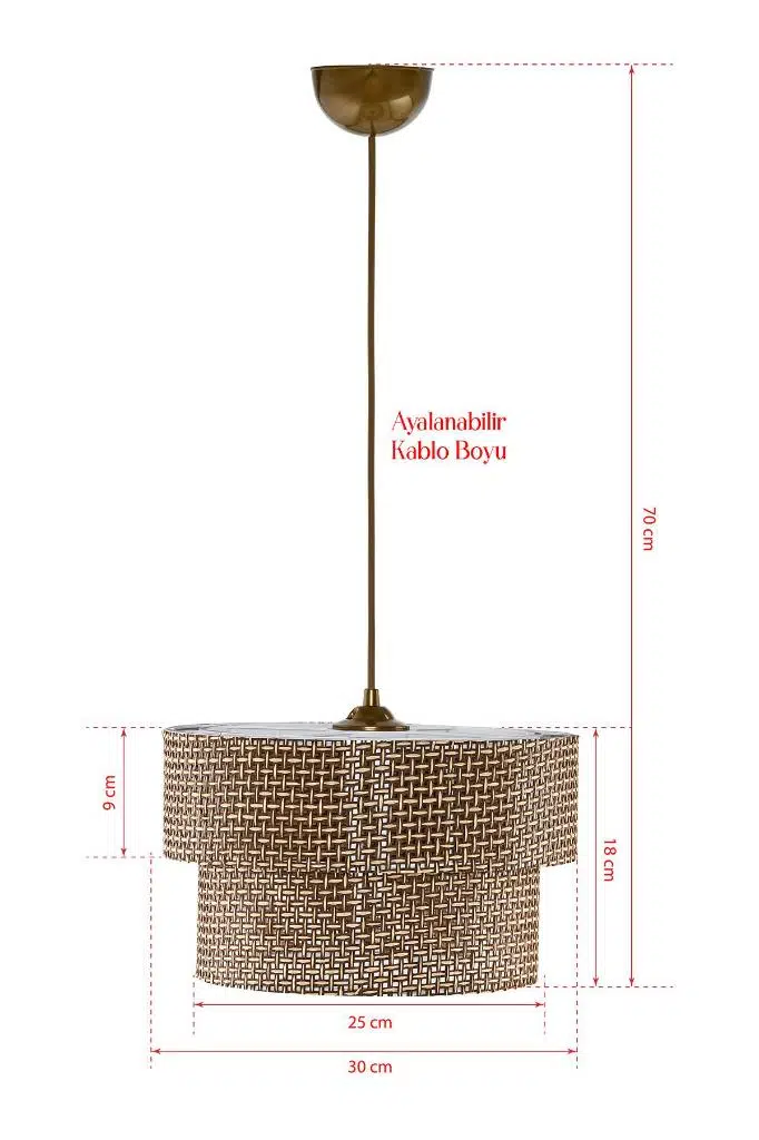 Orjinal hasırla kaplanmış aydınlatma malzemesi ile yapılmıştır. Aralardaki boşlulardan harika şekilde ışığı yansıtırken kullanılan alana dekoratif ve otantik bir hava katar.