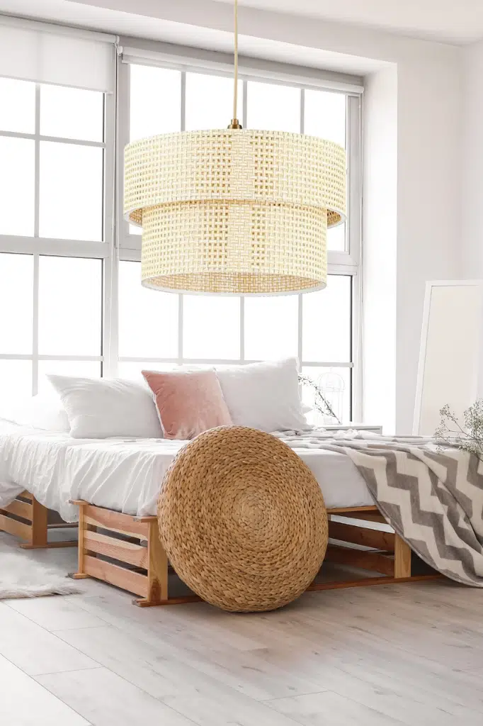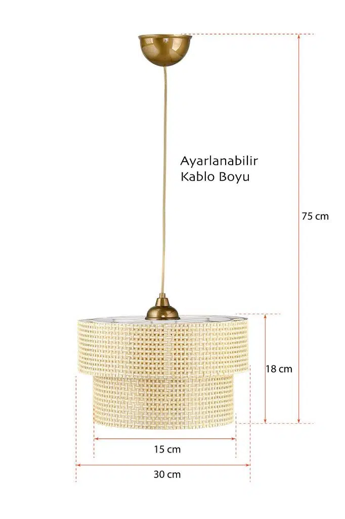 Orjinal hasırla kaplanmış aydınlatma malzemesi ile yapılmıştır. Aralardaki boşlulardan harika şekilde ışığı yansıtırken kullanılan alana dekoratif ve otantik bir hava katar.