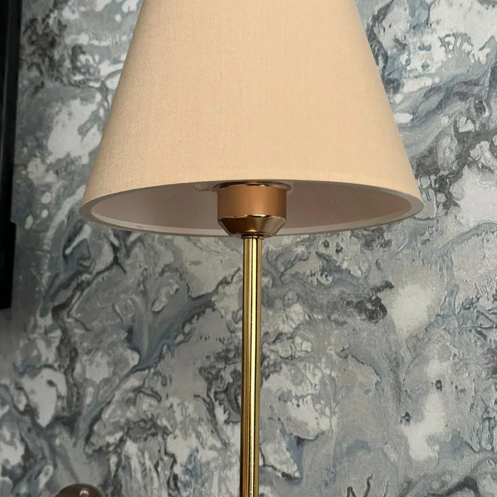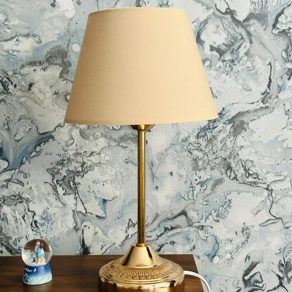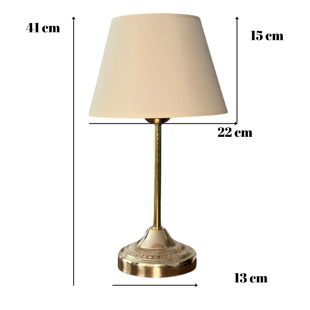 Ev, ofis, cafe ve misafir ağırlayan işletmelere uygun, tamamen metal ayak üzerine kumaş başlıkla birleştirilmiş, şık abajur/masa lambası.