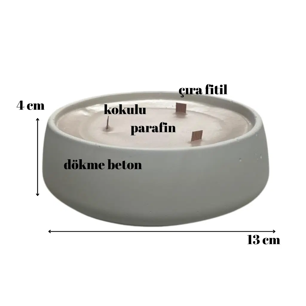 Ürünün döküldüğü beton hazneyi daha sonra farklı bir amaç için kullanabilirsiniz. 250 gr. Mum barındırır. Kullanılan malzeme parafindir.